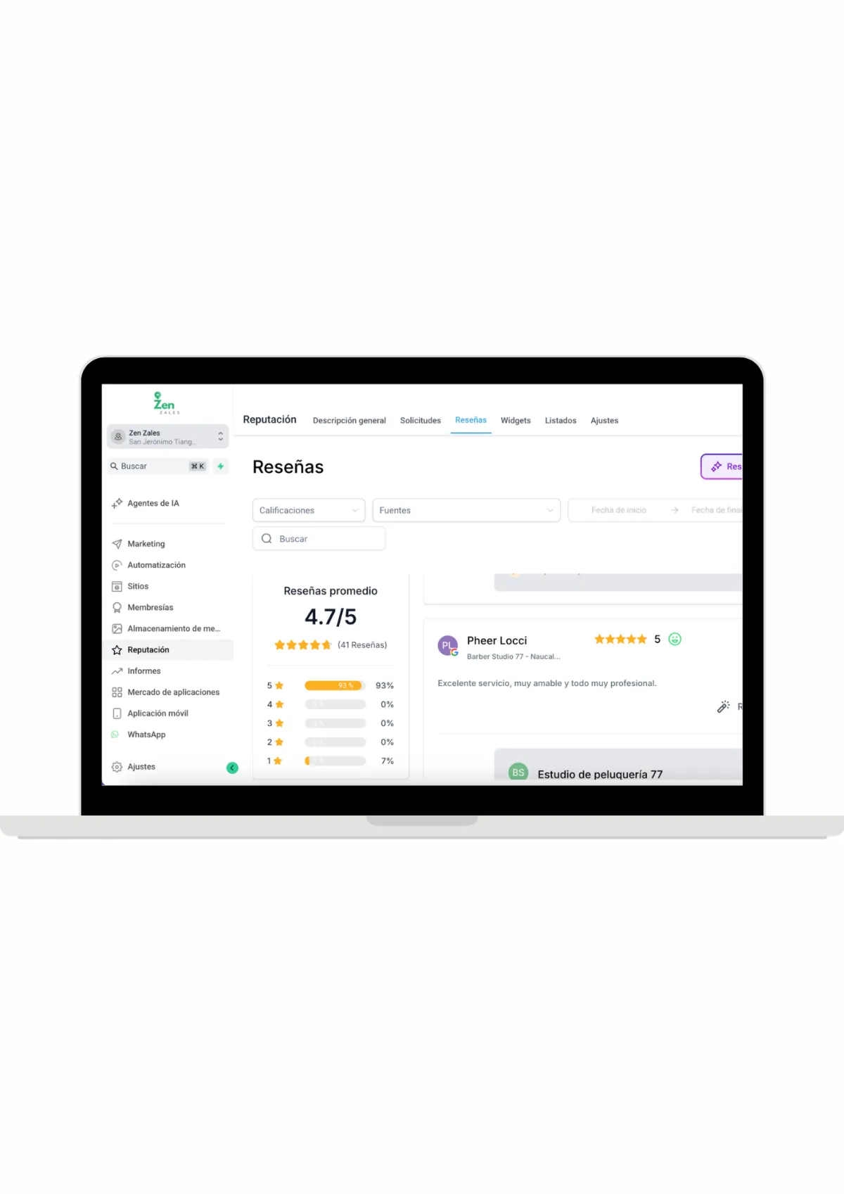 Con ZenZales, puedes responder a todas las reseñas directamente desde nuestro panel. No necesitas iniciar sesión en cada plataforma individualmente; todo lo haces desde un solo lugar.